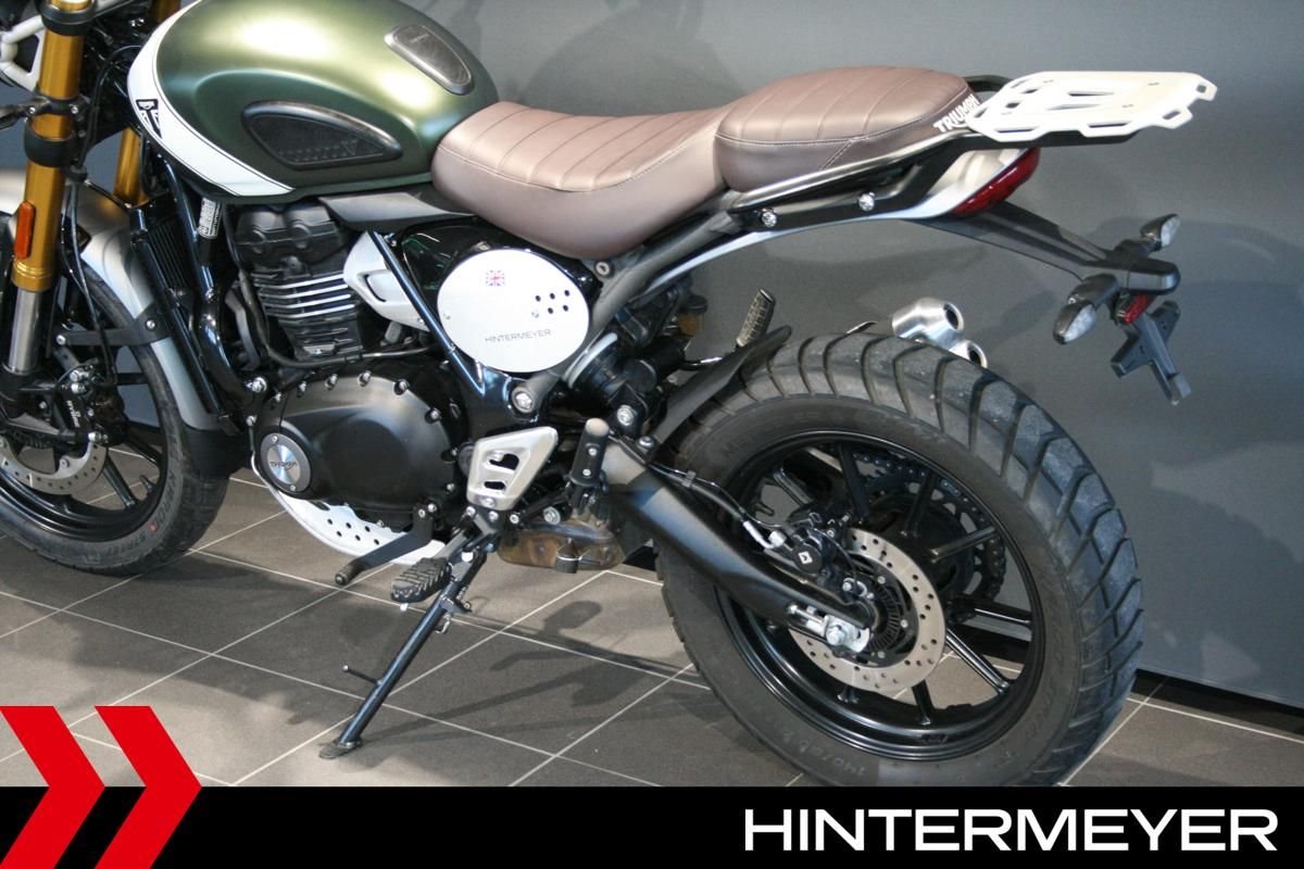 Motorrad Hintermeyer Schongau bietet hier eine TRIUMPH SCRAMBLER 400 X mit einer neuen JAHRESINSPEKTION und 40-Punkte-Durchsicht. Alle unsere Fahrzeuge werden mit mindestens einem Jahr TÜV übergeben.